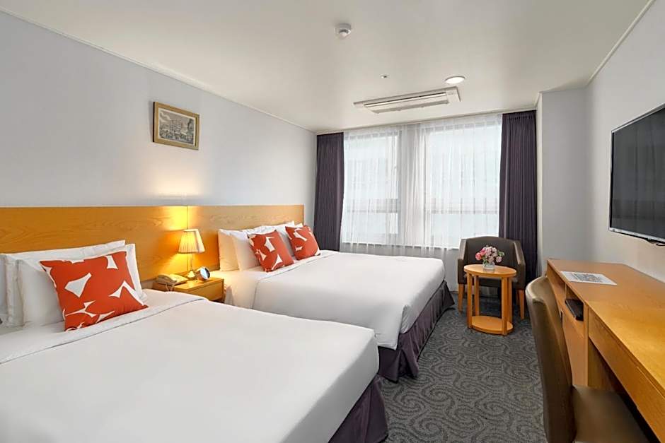 The triple room includes a private bathroom fitted with a shower, a hairdryer and slippers. The spacious air-conditioned triple room offers a flat-screen TV with satellite channels, soundproof walls, a wardrobe, an electric kettle as well as city views. The unit has 3 beds.